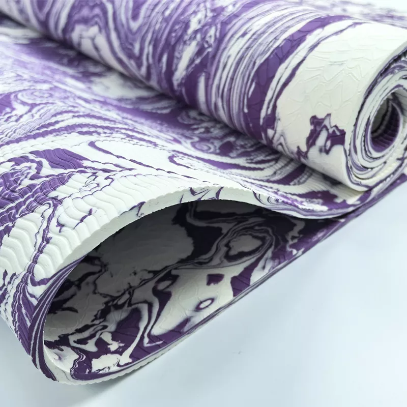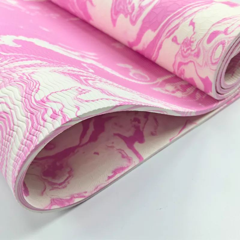 맞춤형 카모 TPE 요가 매트는 발포 전에 두 가지 색상의 TPE 소재를 혼합하여 표면뿐만 아니라 매트 두께 전체에 자연스러운 대리석 위장 패턴을 만드는 독특한 공정을 통해 제작됩니다. 완전히 재활용 가능하며 오래 지속되는 성능을 위해 제작되었습니다. BogaSports는 완전한 맞춤 서비스와 함께 다양한 크기와 두께를 제공합니다.